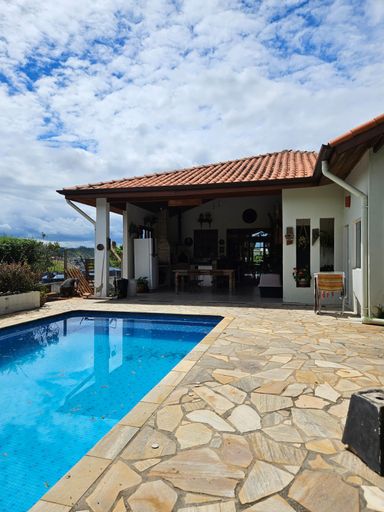 Cod. 172 Casa a venda em Igarata Terreno 3160 m² área construída 450 m² Casa com: 4 quartos, sendo um suíte master com escritório e lareira, 6 banheiros no total, 1 sala de estar com lareira, 1 sala de jantar, 1 sala de leitura e uma sala de televisão. 1 cozinha planejada e uma lavanderia. Piscina(10x5) em frente à área gourmet com churrasqueira e forno a lenha. Casa com varanda com vista panorâmica privilegiada para a represa. O terreno é cercado de uma área app R$1.850.000,00