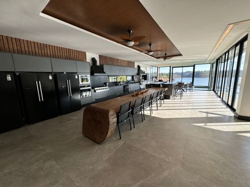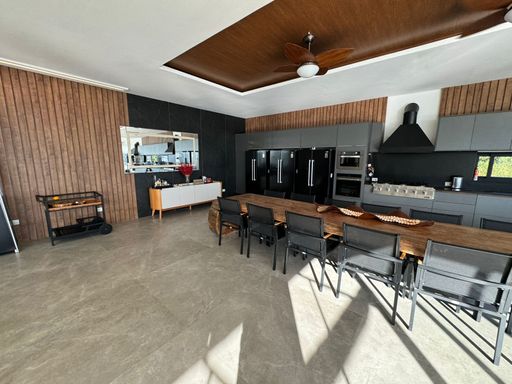 Ambientes amplos e integrados, incluindo cozinha, sala de jantar e sala de estar, proporcionando uma experiência de convivência única.