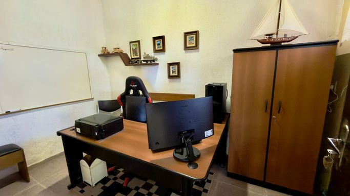 Escritório, sala de estar, banheiro e lavanderia