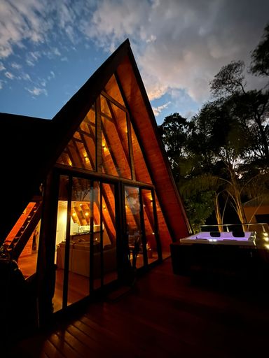 Cod. 388 Chalé no Condomínio Recanto dos Pássaros, Jacareí Descrição: O chalé tem aprox. 115 m² de construção 2 quartos, 1 banheiro, Sala de TV, Sala de jantar, Cozinha, Espaço de home Office, Deck com jacuzzi para 4 pessoas, Espaço para fogueira Garagem para até 3 carros. Construção recente: 2,5 anos. Toda murada e com jardim com paisagismo. Condomínio R$ 640,00 (mês) IPTU R$ 620,00 (ano) Preço de venda R$ 1.150.000,00